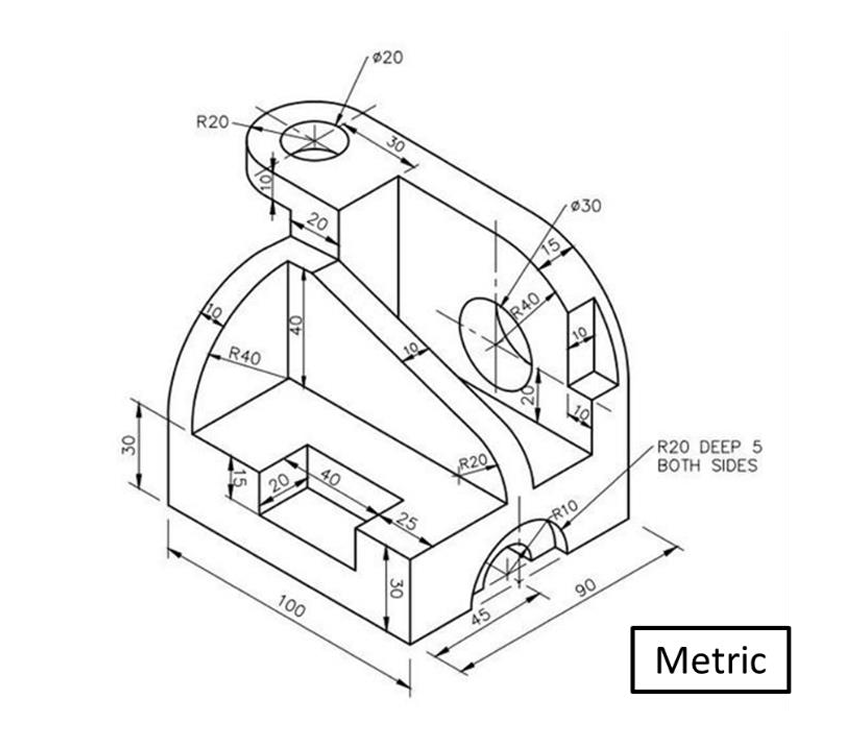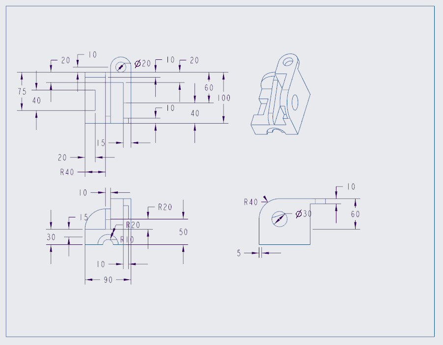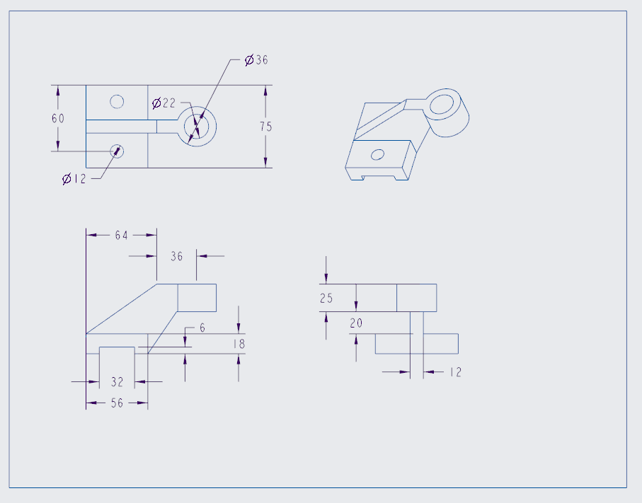 This section demonstrates the workflow from interpreting dimensioned engineering drawings to constructing parametric 3D models and generating manufacturing-ready multiview drawings using CAD.
